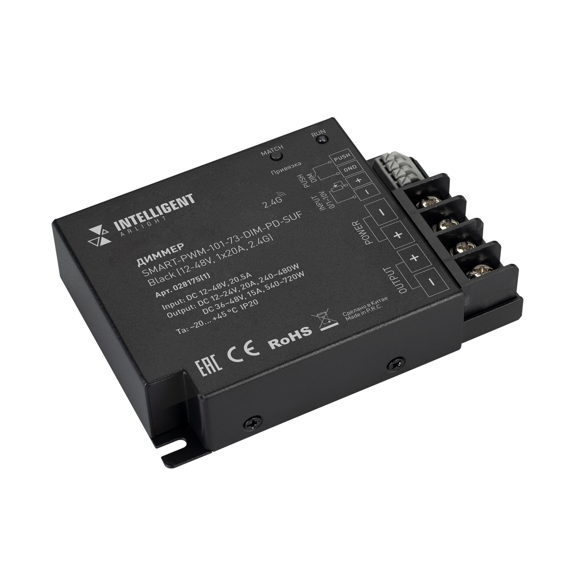 INTELLIGENT ARLIGHT Диммер SMART-PWM-101-73-DIM-PD-SUF Black (12-48V, 1x20A, 2.4G) (IARL, IP20 Металл, 5 лет) 028175(1) в Сургуте