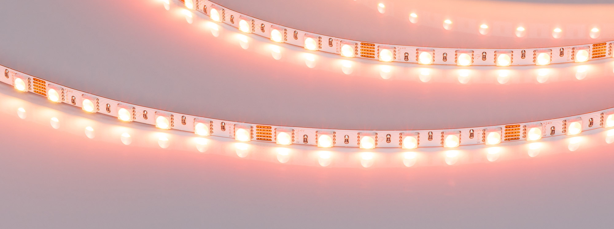 Светодиодная лента RT серии H96 с узкой платой 5 мм. Светодиоды SMD 4040, 96 шт/м, цвет свечения RGBW, теплый 3000K, четыре кристалла в одном корпусе. Четырехканальная лента с пятью проводами для подключения, управляется RGBW контроллером. Применяется для декоративной интерьерной подсветки ниш, витрин, мебели, стеклянных полок. Узкая плата 5 мм позволяет устанавливать ленту в тонкий паз, создавая тонкие световые линии. Обязательна установка на алюминиевый профиль.